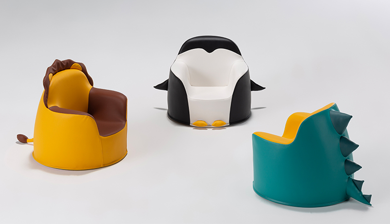 キッズ用チェアもご用意しています。小さな体に合うサイズ設計で、座りやすく立ち座りも安心。角の丸いフォルムや安定感に配慮し、保育施設・待合スペース・キッズコーナーなど幅広く活躍します。